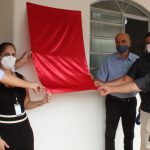 Posteriormente as autoridades presentes no local em conjunto com o representante do PROCON Sr. Gilvaldo oficializaram a inauguração da Unidade do PROCON Santa Vitória, com a leitura da placa e estabelecimento da mesma no local.