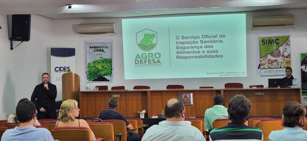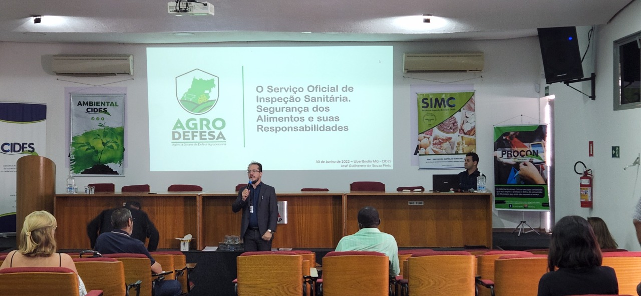 O Professor José Guilherme Souza Pinto, fiscal estadual agropecuário da Agrodefesa (Agência Goiana de Defesa Agropecuária), Médico Veterinário e Mestre em Ciências Veterinárias, foi convidado pelo Cides para ministrar uma palestra sobre “O Serviço Oficial de Inspeção Sanitária. Segurança dos Alimentos e suas Responsabilidades” trouxe todo seu conhecimento e experiência do serviço de inspeção e segurança alimentar, além de vivências e ações que são e estão sendo implementadas no Goiás.
