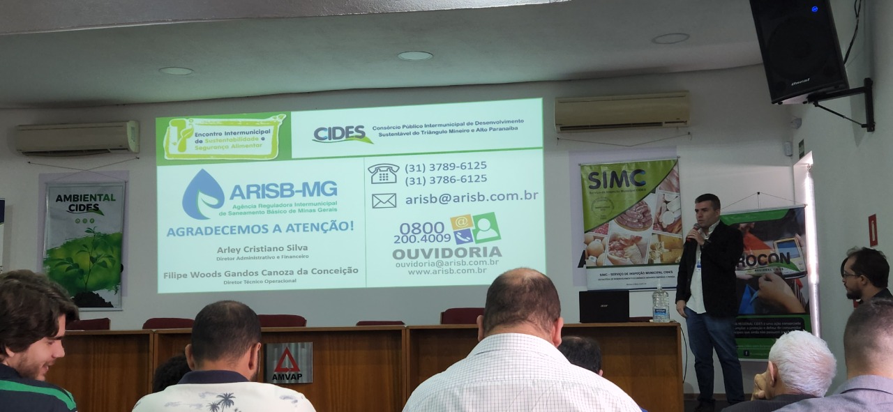 O Cides trouxe a Agência Reguladora Intermunicipal de Saneamento Básico de Minas Gerais (ARISB – MG), para apresentar o tema “Implementação dos Instrumentos de Cobrança pelo novo marco do saneamento básico e o papel dos gestores municipais e entidades reguladoras”. A ARISB é responsável por regular, fiscalizar e assim como o Cides também faz com outros serviços, ensinar. Possuem sede em Belo Horizonte, mas são atuantes em praticamente todos os municípios de Minas. A palestra foi ministrada por Arley Cristiano Silva, Diretor Administrativo e Financeiro.