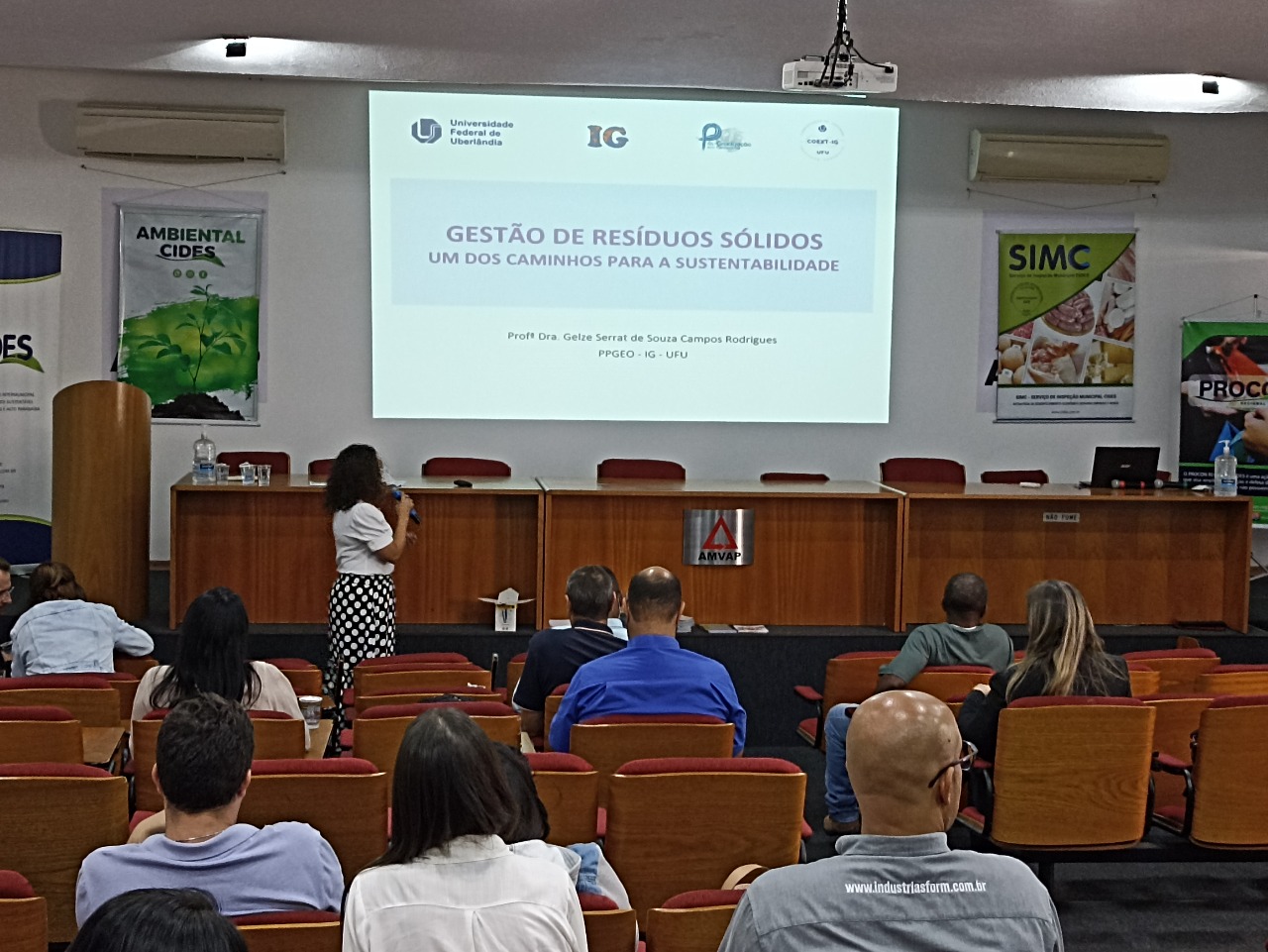A palestra sobre “Gestão de resíduos sólidos: um dos caminhos para a sustentabilidade” foi ministrada pela Professora Doutora Gelze Serrat, geógrafa, com pós-doutorado em geografia, que falou sobre o projeto em parceria com o Cides. “Estamos encampando um projeto de extensão relacionado a coleta seletiva patrocinado pelo Cides, o evento teve esse caráter de apresentar alguns temas que são importantes para estes municípios em relação a segurança alimentar, a coleta seletiva e sustentabilidade e também de alguma certa forma desenvolver uma oficina voltada para compostagem”, explicou a professora do Instituto de Geografia, Gelze Serrat.