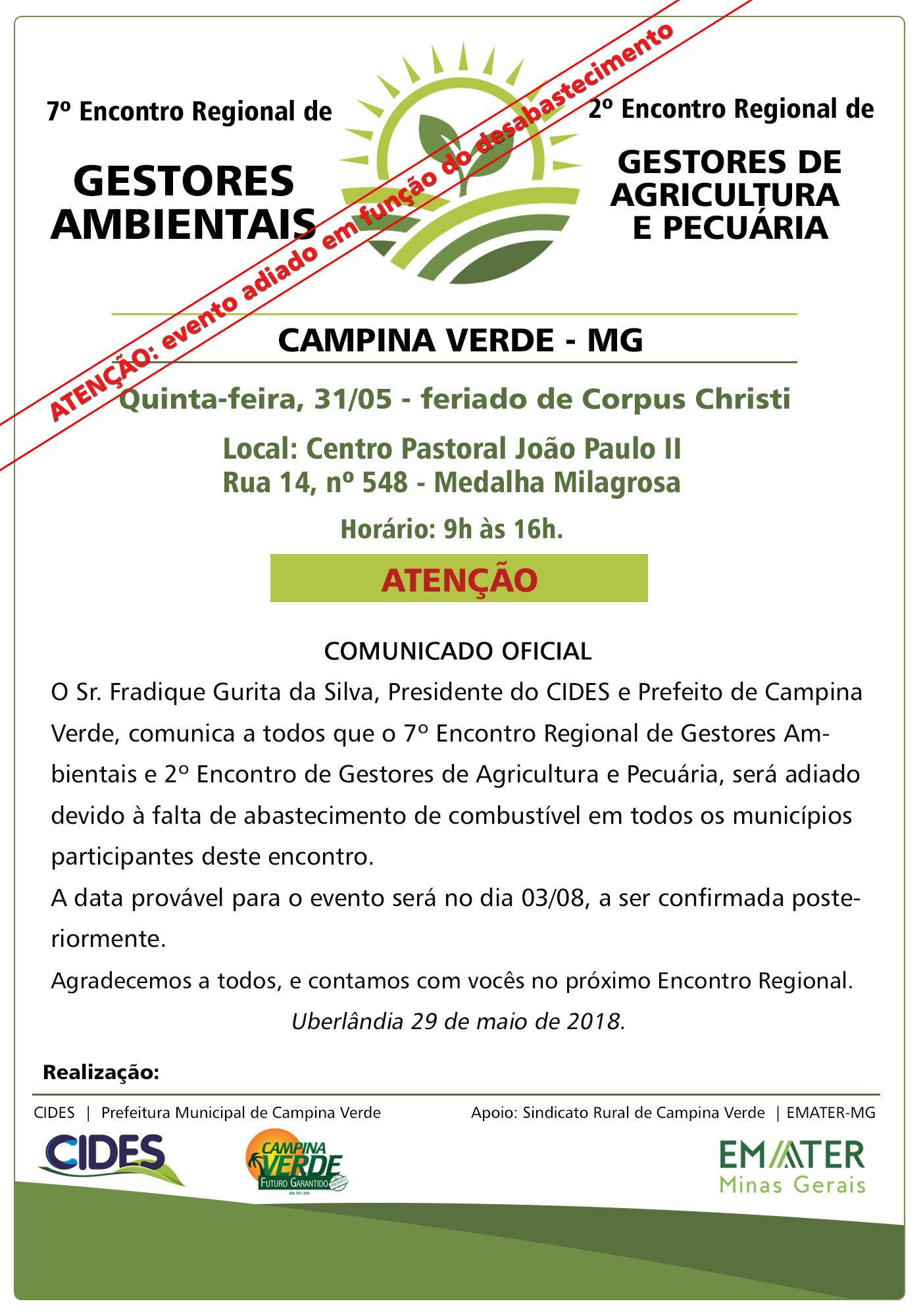 Encontro Regional de Gestores é adiado em função do desabastecimento