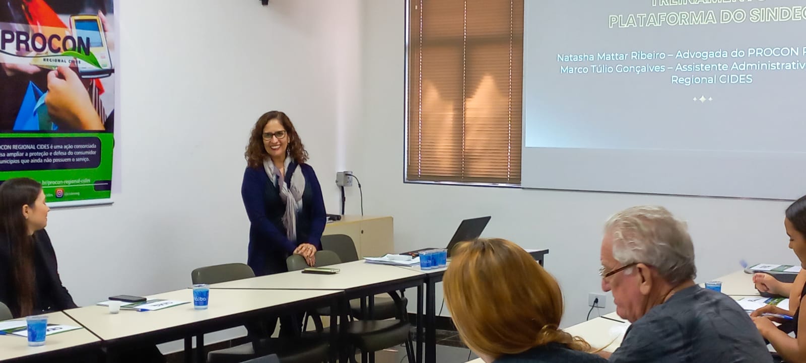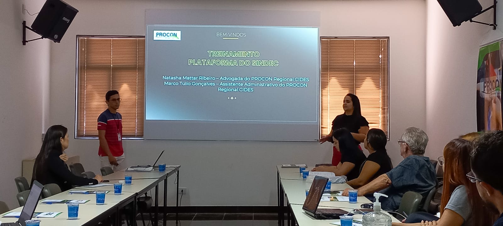 Primeiramente, a Coordenadora Executiva do Procon e também Secretaria Executiva do CIDES, Cristina Martins, fez uma explanação, demonstrando a importância de utilização da plataforma do SINDEC. Em um segundo momento, o Assistente Administrativo do PROCON, Sr. Marco Túlio Gonçalves, em conjunto com a Advogada do Procon Regional CIDES, Dra. Natasha Mattar Ribeiro, discorreram acerca dos conceitos básicos para utilização da plataforma, reforçando a importância de executar todos os atendimentos dentro do sistema, a fim de gerar um cadastro único de amplo acesso aos consumidores.