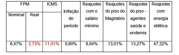 “O ICMS também acumula perda real no mesmo período, são 11,01%. Em contrapartida, existem os reajustes com o salário mínimo, dos pisos salariais para educação, agentes de saúde e endemia, o consumo de energia elétrica, entre outros”, explica Ferreti.