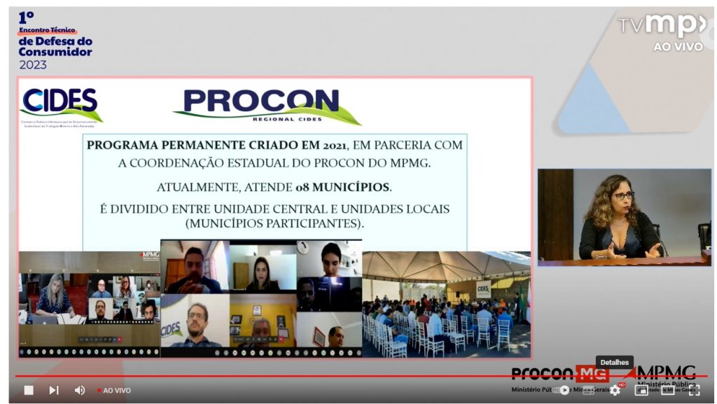 O Ministério Público de Minas Gerais realizou nos dias 03 e 04 de agosto, em Belo Horizonte, o 1° Encontro Técnico de Defesa do Consumidor. Durante o evento, a secretária Executiva do CIDES, Cristina Martins, e o advogado do Procon Regional CIDES, Julio Cesar Sobrinho, falaram sobre como funciona o Procon Regional através do consórcio.